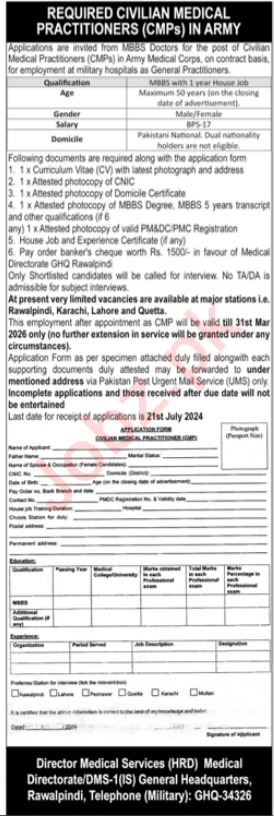 Apply at GHQ Canon Company Rawalpindi latest Government jobs in Army jobs and departments before closing date which is around July 21, 2024 or as per closing date in newspaper ad. Read complete ad online via ARMY to know how to apply on latest GHQ Canon Company Rawalpindi job opportunities.
