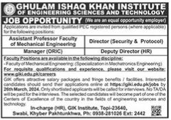 Apply at Ghulam Ishaq Khan Institute of Engineering science and Technology GIKI latest Private jobs in Education and departments before closing date which is around March 26, 2024 or as per closing date in newspaper ad. Read complete ad online to know how to apply on latest Ghulam Ishaq Khan Institute of Engineering science and Technology GIKI job opportunities. Some jobs in Ghulam Ishaq Khan Institute of Engineering science and Technology GIKI may require skills like Human Resources, Security, Mechanical Engineering and Teaching/Lecturing.