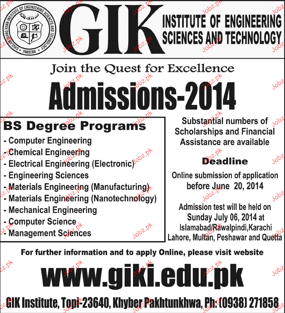 Ghulam Ishaque Khan Institute of Engineering Science and Technology Admission in BS Engineering in Swabi Read newspaper ad for exact details.