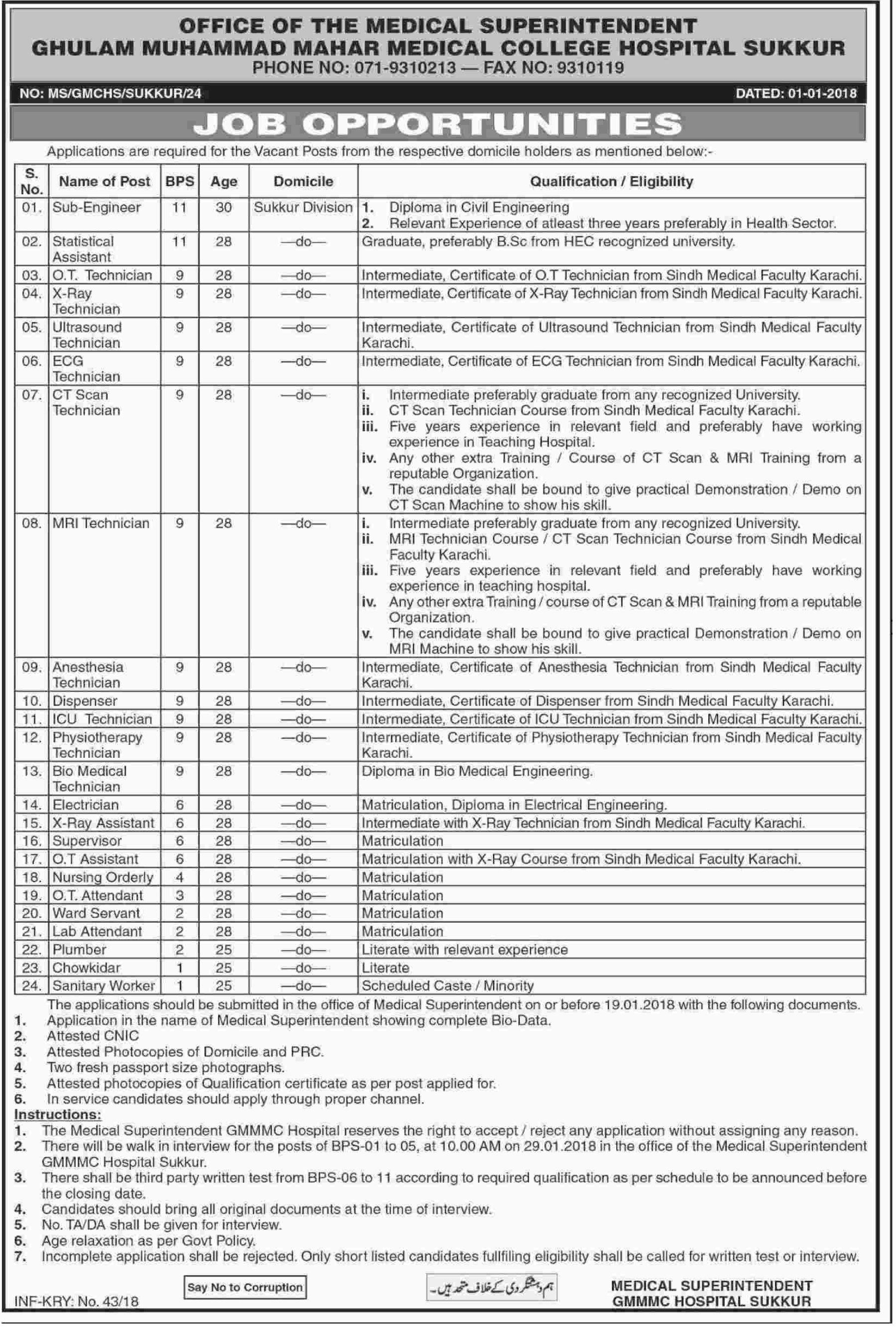Ghulam Muhammad Mahar Medical College Jobs 2018