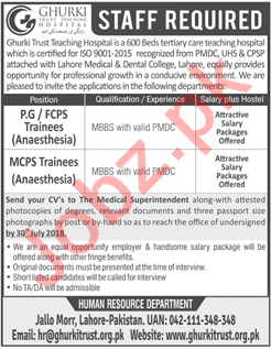 Latest Ghurki Trust Teaching Hospital GTTH Medical Posts Lahore 2025