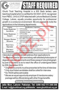 Vacancies in Ghurki Trust Teaching Hospital Advertisement September 2019