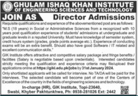 GIKI Swabi Director Admissions 2024