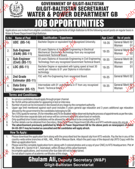 Apply as per details in job advertisement. Login to view further details of how to apply via https://www.jobz.pk online.