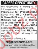 Vacancies in GLITZ PHARMA Advertisement January 2020