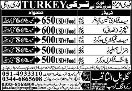 Latest Global Al Saqib Recruitment Group Industrial Posts Istanbul 2025