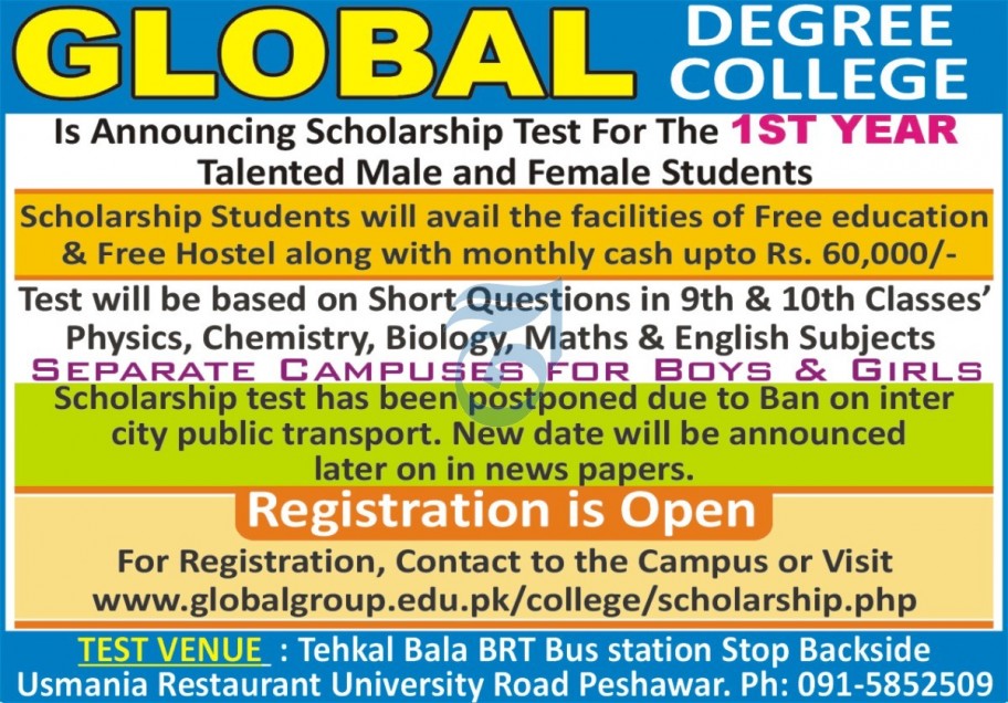 Global Degree College is a private sector college invites applications for admissions in 1st Year, FSc Pre Engineering, FSc Pre Medical, ICS Computer Science & I-Com Commerce in Peshawar KPK 2021. Read newspaper ad for exact details.