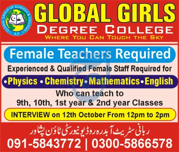 Global Girls Degree College GGDC Peshawar Jobs 2021