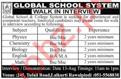 Latest Global School & College System Teaching Posts Rawalpindi 2025