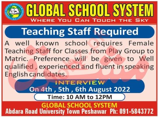 Vacancies in Global School System Peshawar Advertisement August 2022