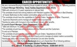 Global Textile Networks Jobs 2019 In Lahore