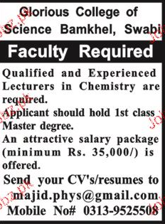 Latest Glorious College Of Science & Technology Teaching Posts Swabi 2025