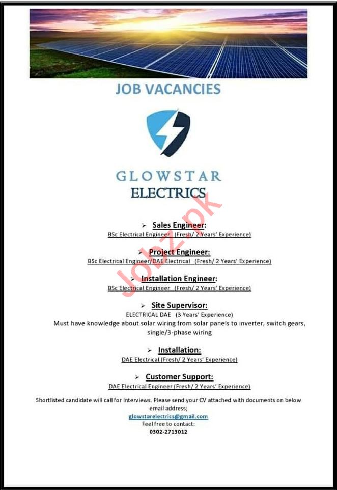 Latest Glow Star Electrics Engineering Posts Islamabad 2025