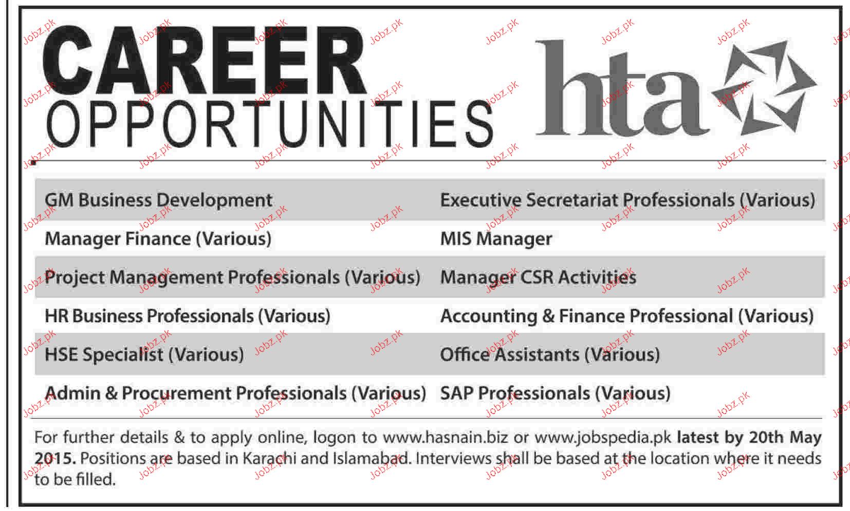 Apply as per details in job advertisement. Login to view further details of how to apply via https://www.jobz.pk online.