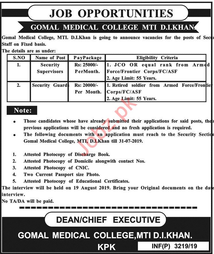 Latest Gomal Medical College Security Posts Dera Ismail Khan 2025