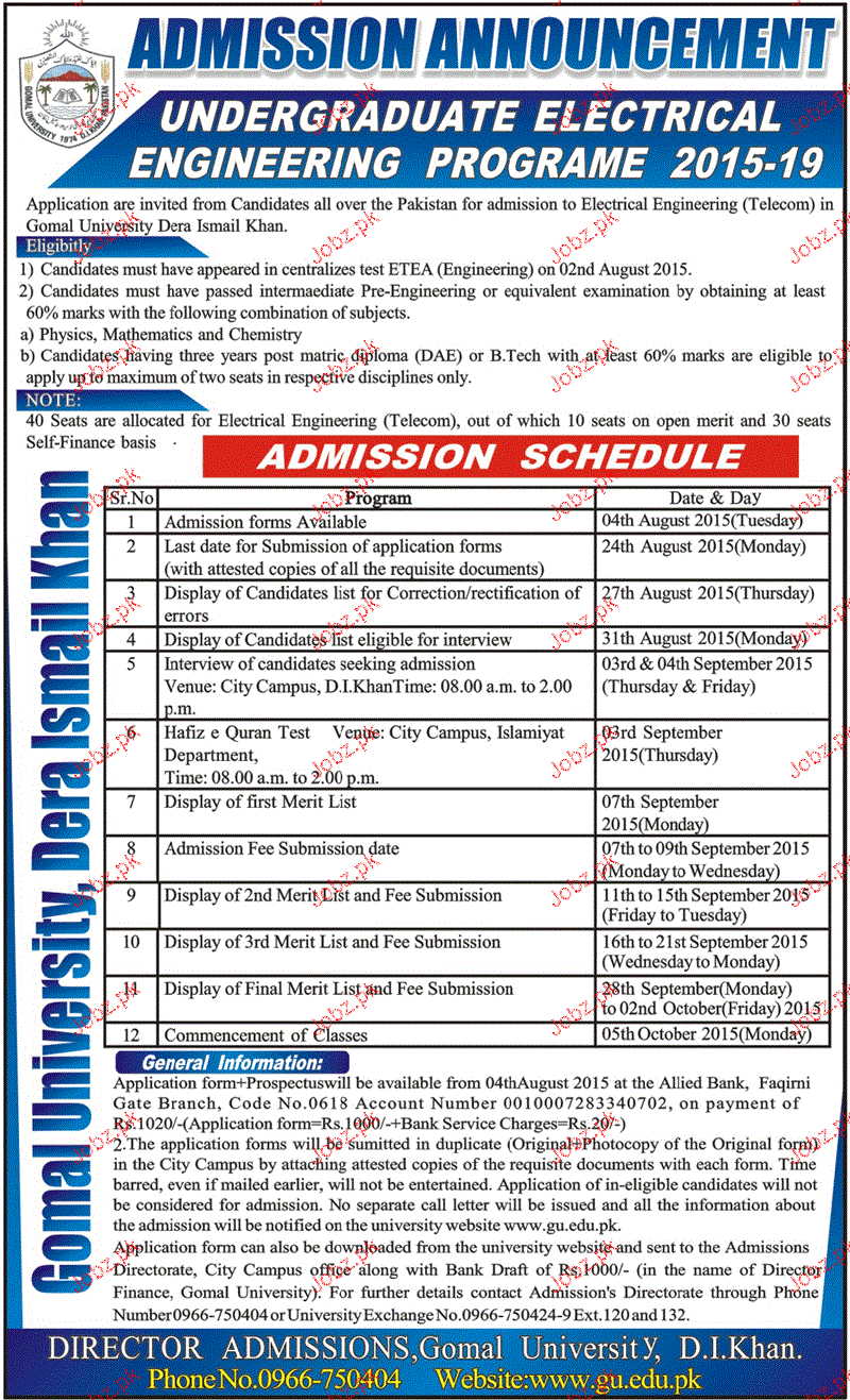 Gomal University Admission in Undergraduate Programs in Dear Ismile Khan. Read newspaper ad for exact details.