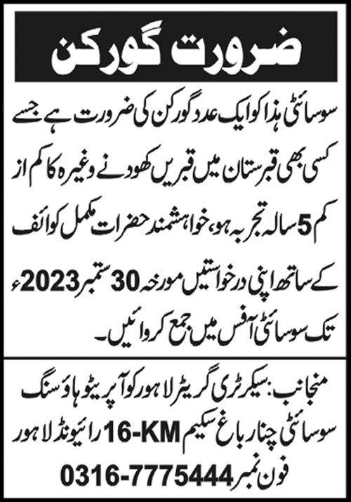 Gorkan Job At Greater Lahore Cooperative Housing Society