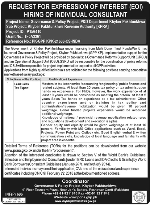 Governance and Policy Project Khyber Pakhtunkhawa Jobs 2018