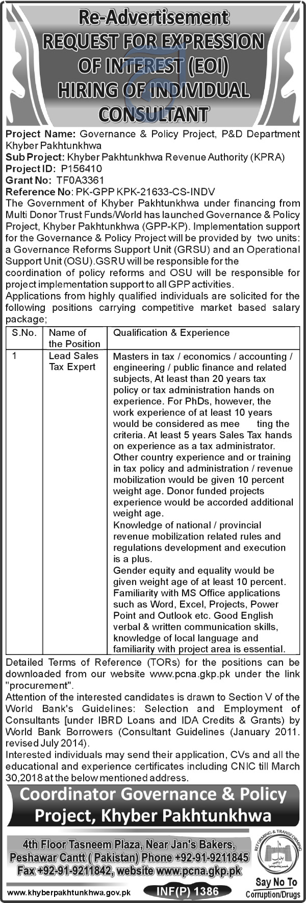 Latest Governance and Policy Project Management Posts Peshawar 2025