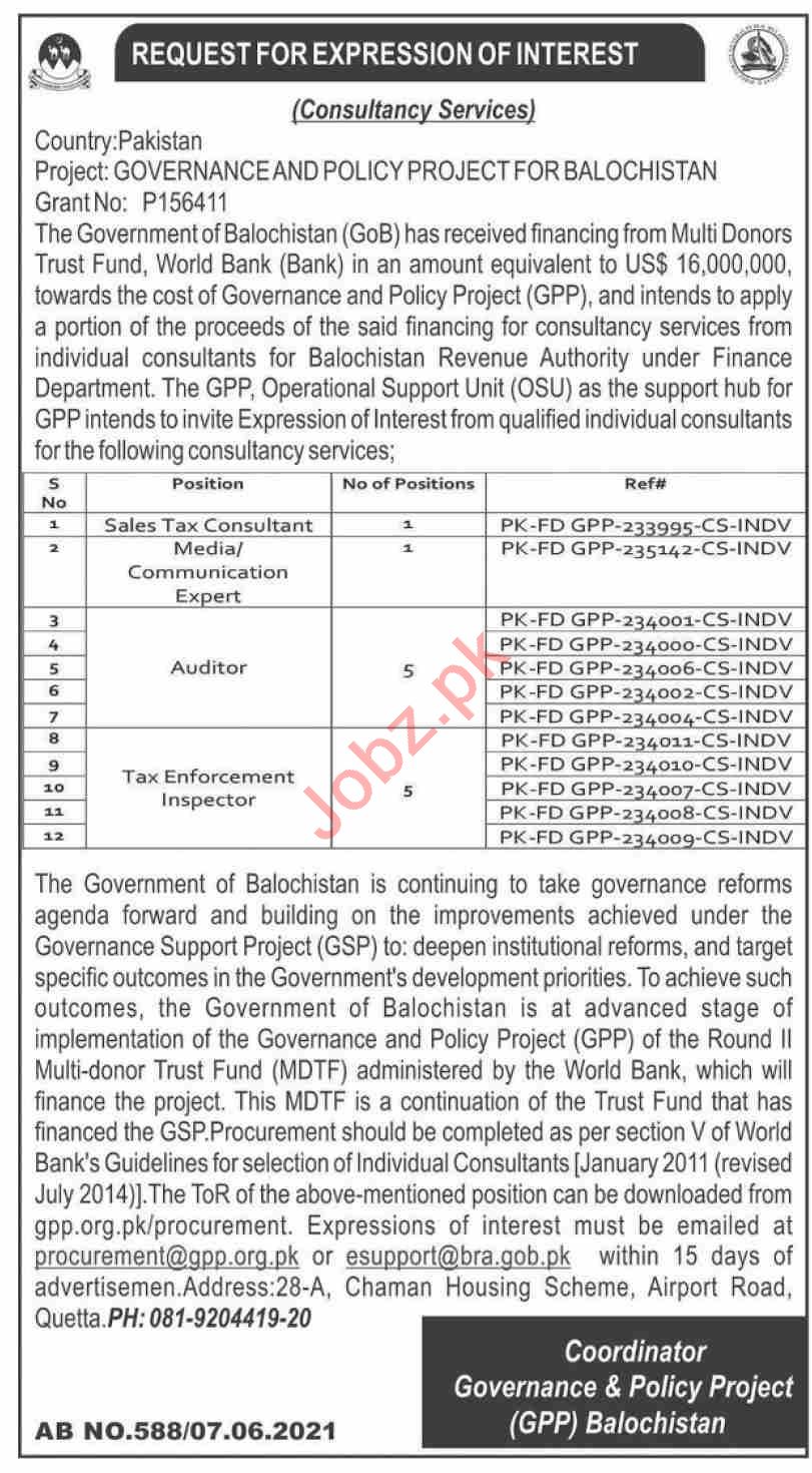 Governance & Policy Project GPP Balochistan Jobs 2021