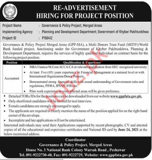 Latest Planning and Development Department Accounting Posts Peshawar 2025