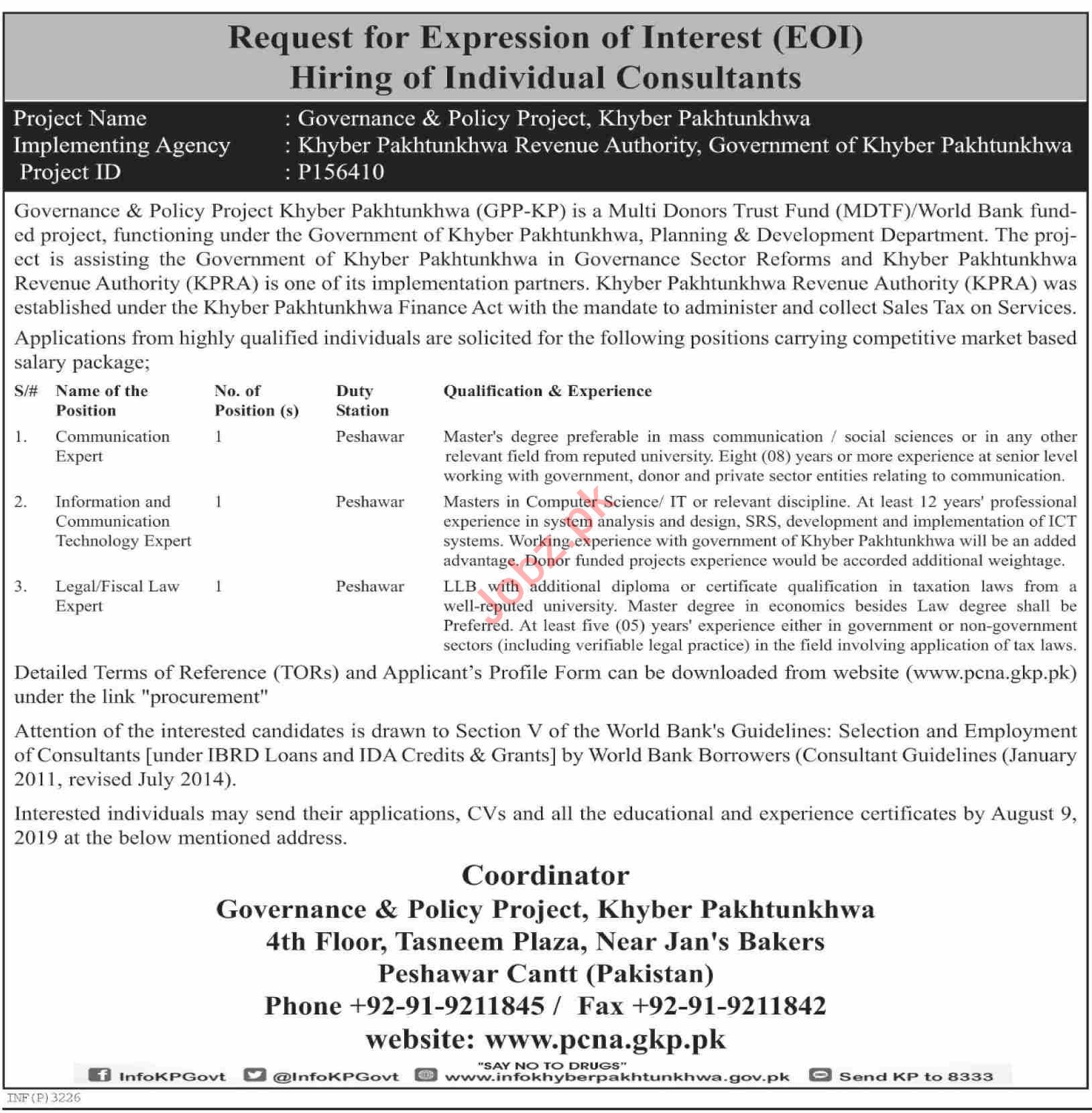 Vacancies in Khyber Pakhtunkhwa Revenue Authority KPRA Advertisement July 2019