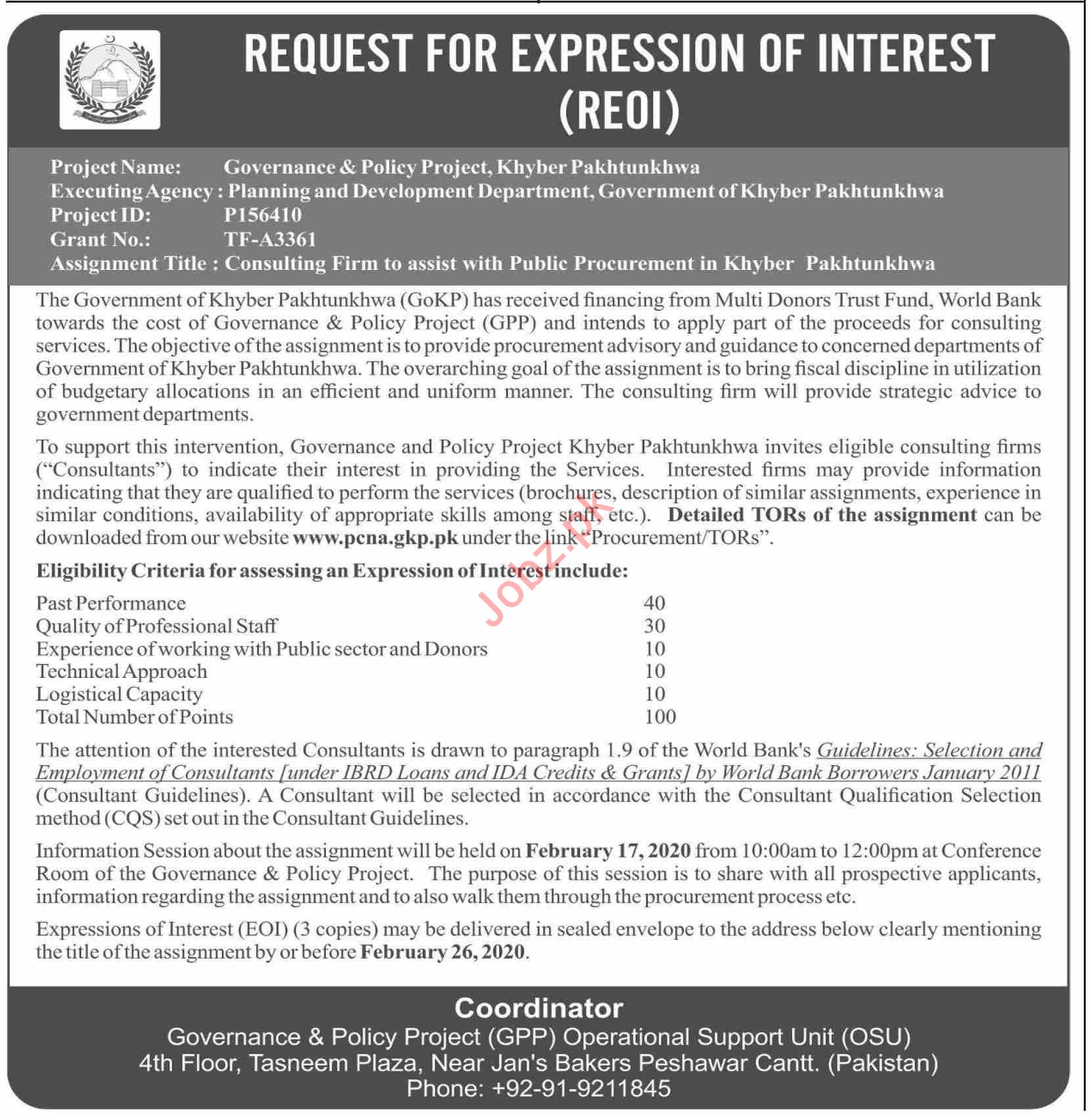 Latest Governance and Policy Project Consultant Posts Peshawar 2025