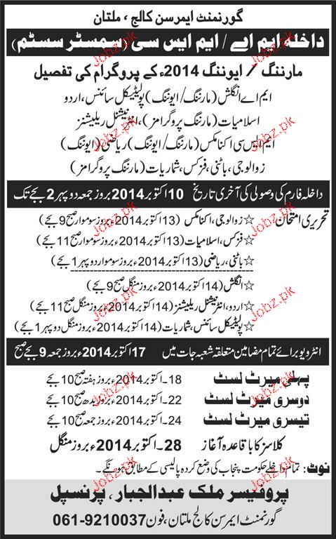 Government Amerson College Admission in MA /MSc in Multan. Read newspaper ad for exact details.