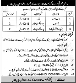 Government Associate College for Women jobs advertisement dated about 22 August 2025 in daily Nawaiwaqt Newspaper invites application for the vacant post of khakrob, security guard, naib qasid and chowkidar in Mian Channu, mian channu Punjab Pakistan. Persons with Primary and Middle etc. education can apply.