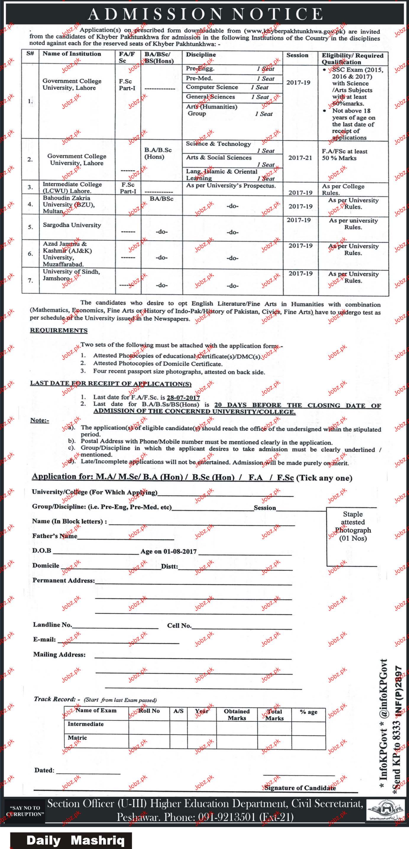 Government College University Admission in Class XI in Lahore. Read newspaper ad for exact details.