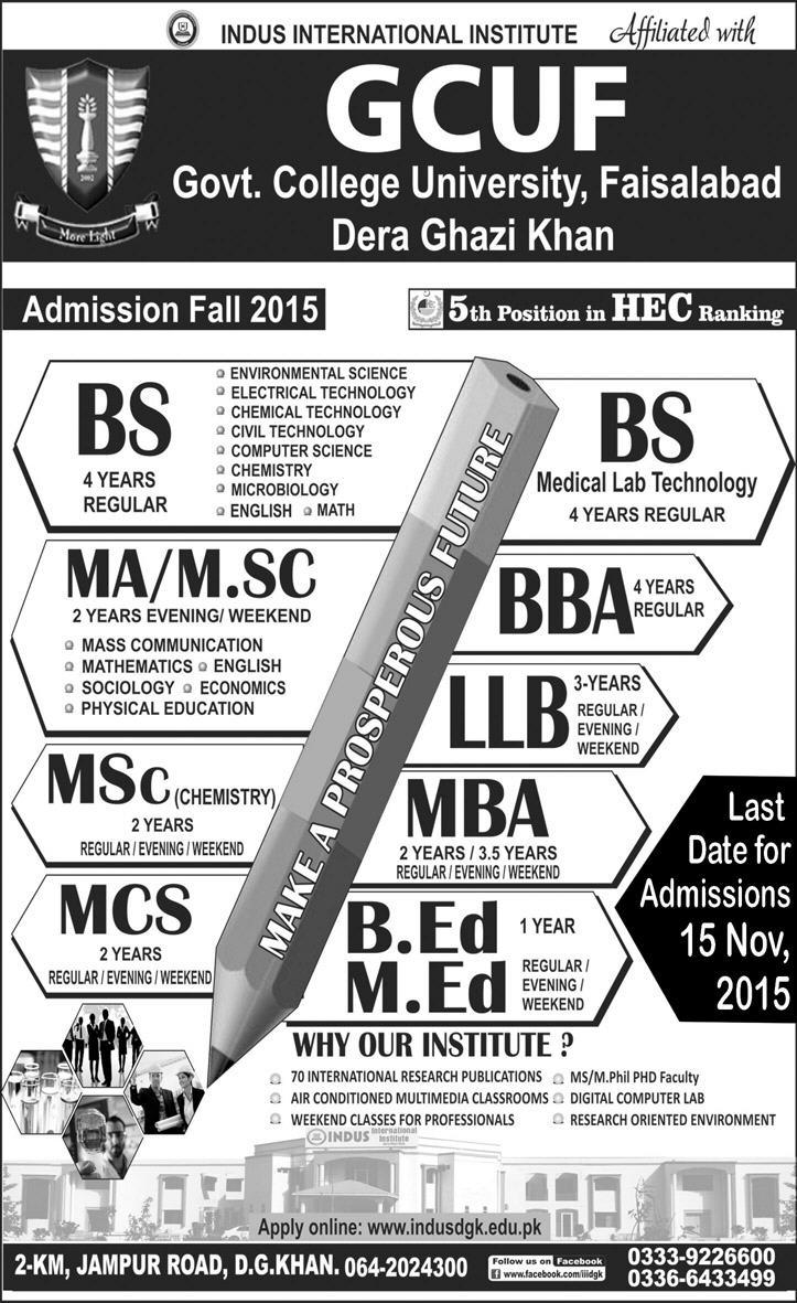 Government College University Faisalabad Admission in BS, BSc, MSC, BBA, MA, B.Ed and M.Ed in Faisalabad. Read newspaper ad for exact details.