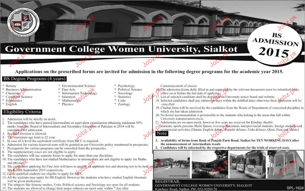 Government College Women university Admission in BS in Sialkot. Read newspaper ad for exact details.