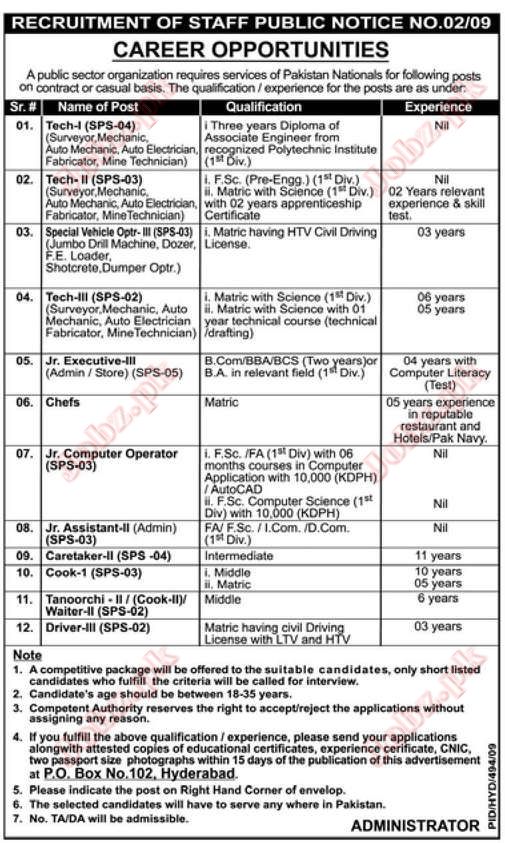 Apply as per details in job advertisement. Login to view further details of how to apply via https://www.jobz.pk online.