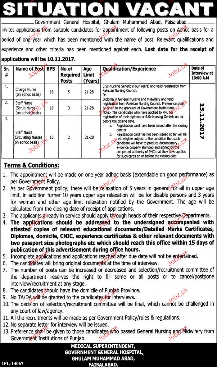 Latest Government General Hospital Ghulam Mohammad Abad Medical Posts Faisalabad 2025