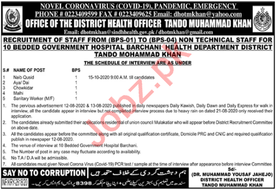 Latest Health Department Labor Posts Tando Muhammad Khan 2025
