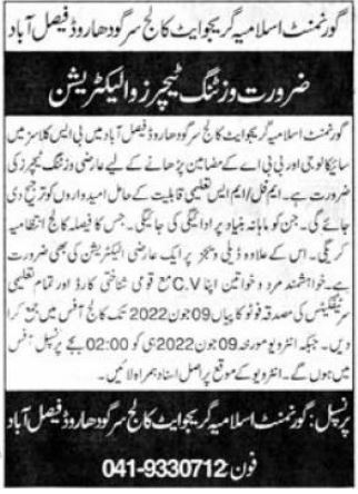 Government Islamia College Faisalabad Teaching Jobs 2022