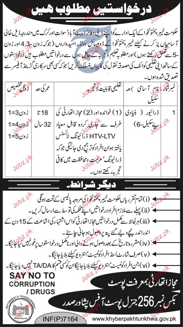 Latest Government of Khyber Pakhtunkhuwa Driving Posts Peshawar 2025