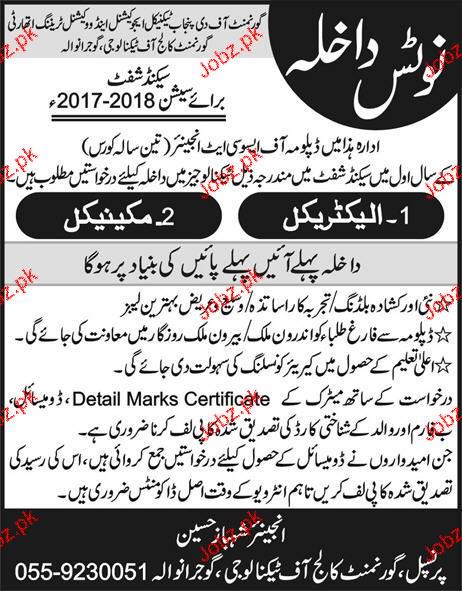 Government of the Punjab Technical Education and Vocational Training Authority Admission in Diploma in Gujranwala. Read newspaper ad for exact details.