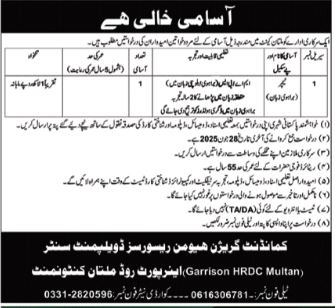 Government Organization Multan Cantt Job 2025