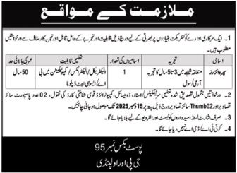 Vacant posts including supervisor are announced in Government Organization Rawalpindi, rawalpindi Punjab Pakistan as per 2 December 2025 advertisement in daily Nawaiwaqt Newspaper. Middle, Intermediate and Matric etc. educational qualification will be preferred.