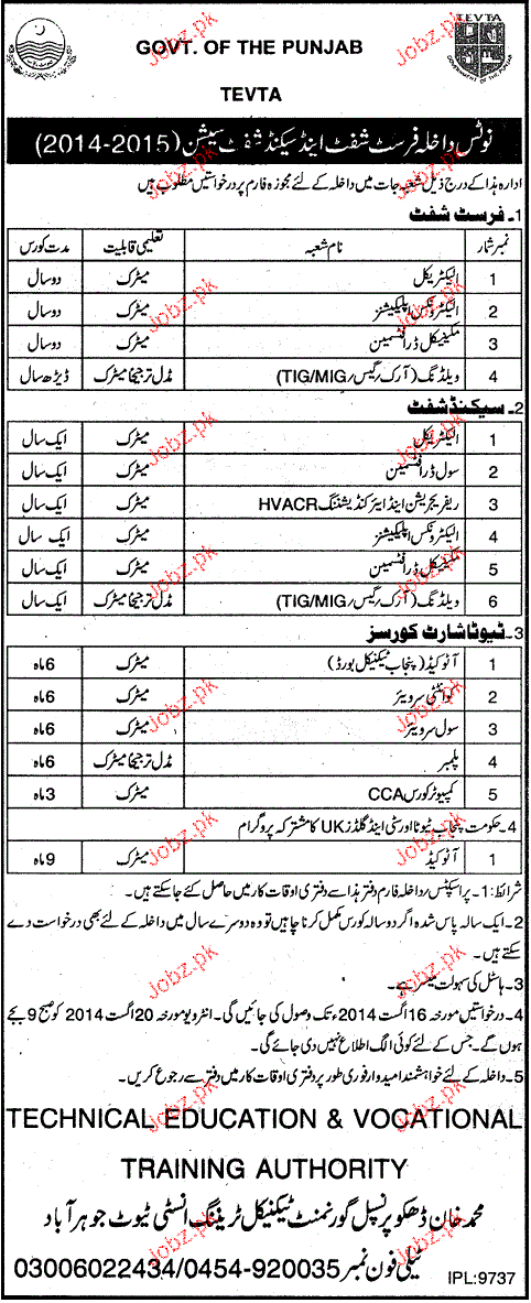 Government Technical Training Institute Admission in Courses in Jauhrarabad. Read newspaper ad for exact details.