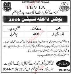 Government Technical Training Institute Admission in Courses in Jhelum. Read newspaper ad for exact details.
