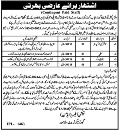 Governor House is looking for candidates for following posts as per job advertisement published in daily Jang Newspaper of April 19, 2025 for location Mall Road Lahore, lahore Punjab Pakistan: