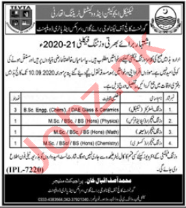 Vacancies in Technical Education & Vocational Training Authority TEVTA Advertisement August 2020