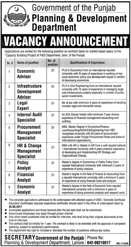 Latest Government Management Posts Lahore 2025