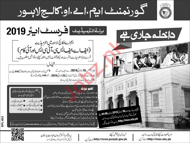 Govt M A O College Lahore Admissions 2019 for Intermediate
