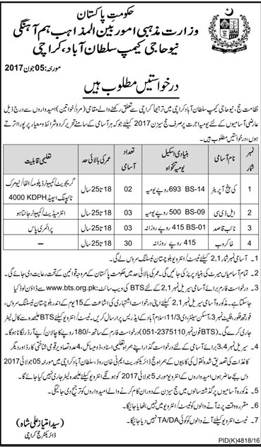Govt Of Pak Ministryof Religious Affairs karachi Jobs