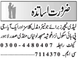 GP High School jobs advertisement dated about 9 March 2022 in daily Jang Newspaper invites application for the vacant post of aya, teacher and lady teacher in Lahore, lahore Punjab Pakistan. Persons with Bachelor, Middle and Master etc. education can apply.