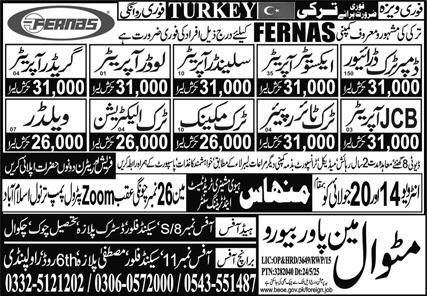Matwal Manpower Bureau invites applications for job positions advertised in daily Express dated 11 July 2025 for following vacancies in Ankara, istanbul Turkey.