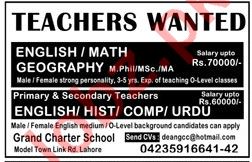 Grand Charter School Model Town Lahore Jobs 2019